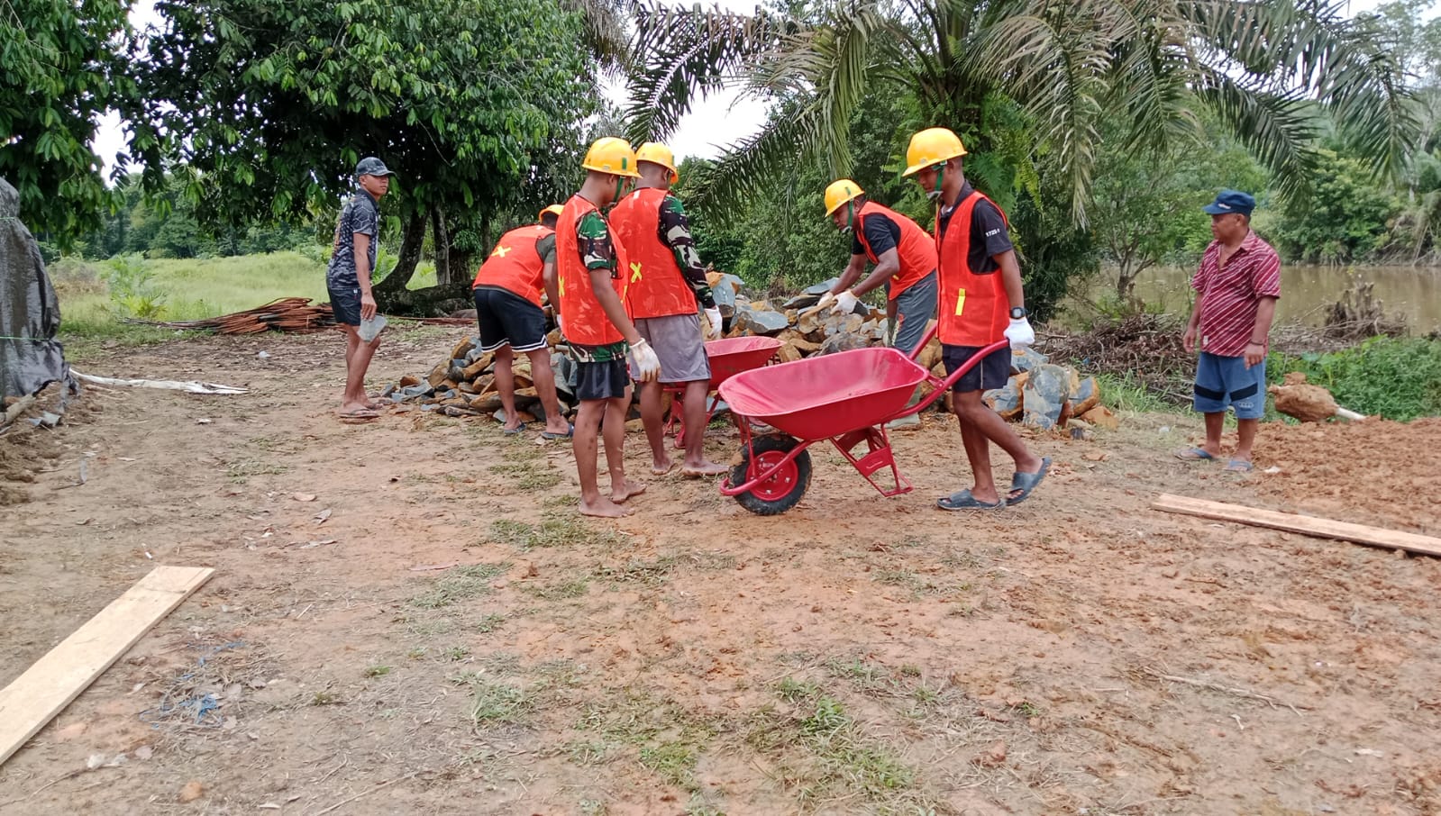 Sejak alat berat dan material konstruksi tiba di lokasi, aktivitas pembangunan telah meningkat secara signifikan. Personel dari Kodim 1015/Sampit dan Yonif TP 923/Mentaya, bersama dengan unsur-unsur lainnya, saling berkolaborasi dalam mengangkut material dan menyusun komponen jembatan dengan penuh semangat. Suasana gotong royong terlihat jelas dalam setiap tahapan yang dilalui.