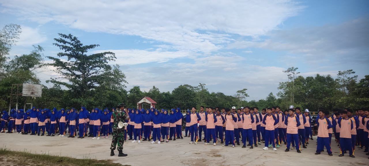 Sampit – Babinsa Koramil 1015-01/MHS, Serda Halim Perdana Kusuma, memimpin latihan PBB bagi siswa SMAN 1 Mentaya Hilir Selatan yang dilaksanakan pada hari Jum’at, 28 November 2025.