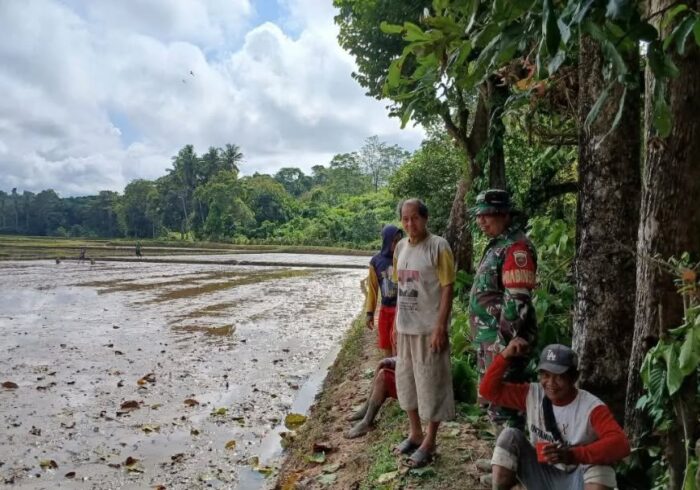 ACEH BARAT – Anggota Koramil 03 Kaway XVI Serma Usman bersama warga melaksanakan pemantauan perkembangan tanaman padi di sawah di Desa Babah Meulaboh Kecamatan Kaway XVI Kabupaten Aceh Barat. Minggu (05/01/25)