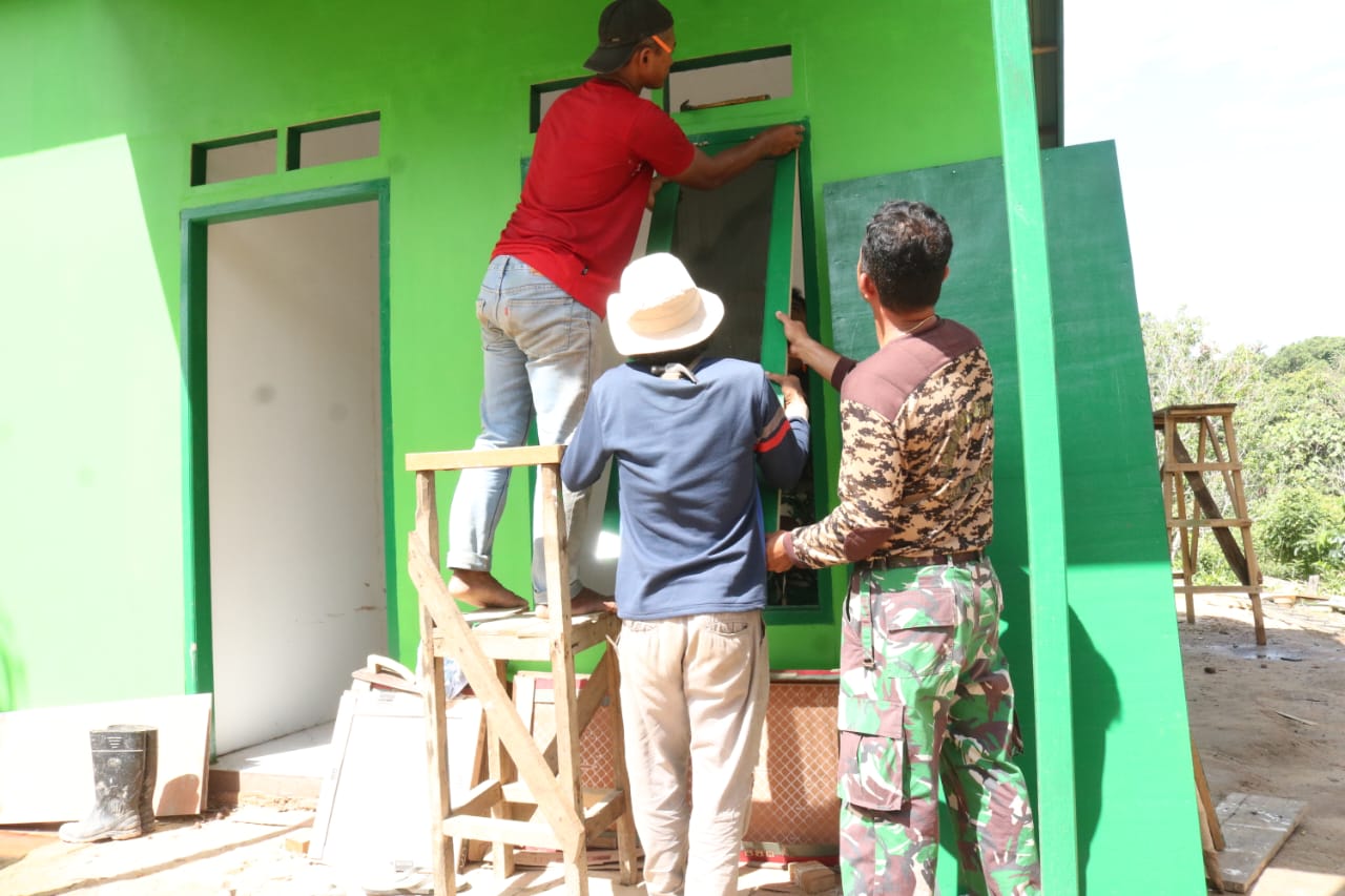 Memasuki pekan terakhir TMMD, Satgas bersama warga desa bahu-membahu mempercepat pengerjaan Rumah Tidak Layak Huni (RTLH) tersebut. Dari pemasangan jendela hingga penataan keramik, semua dilakukan dengan semangat kebersamaan, Sabtu (16/08).