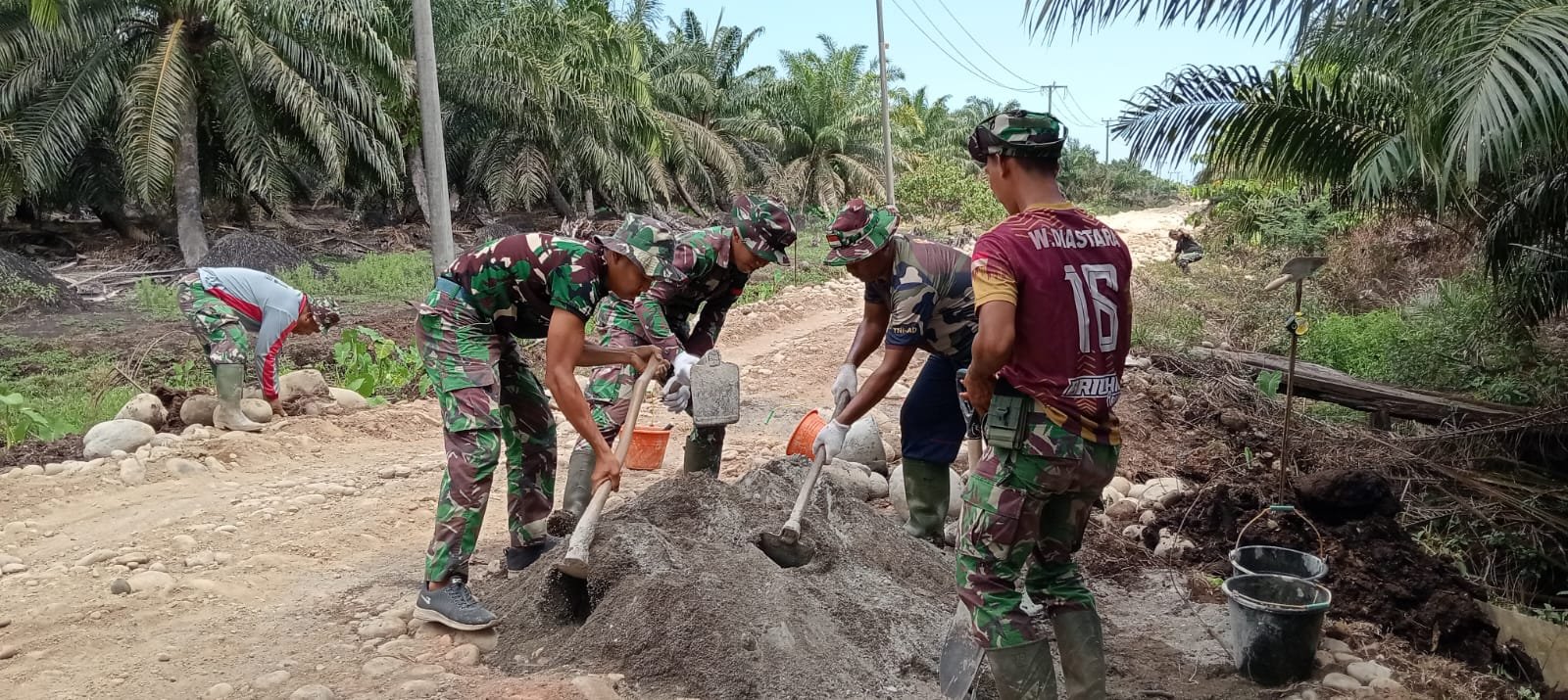 “Kita fokus di titik ini karena posisinya rawan tergerus air hujan. Kalau loningnya kuat, jalan hasil TMMD akan lebih awet,” ujar salah satu personel Satgas yang terlibat.