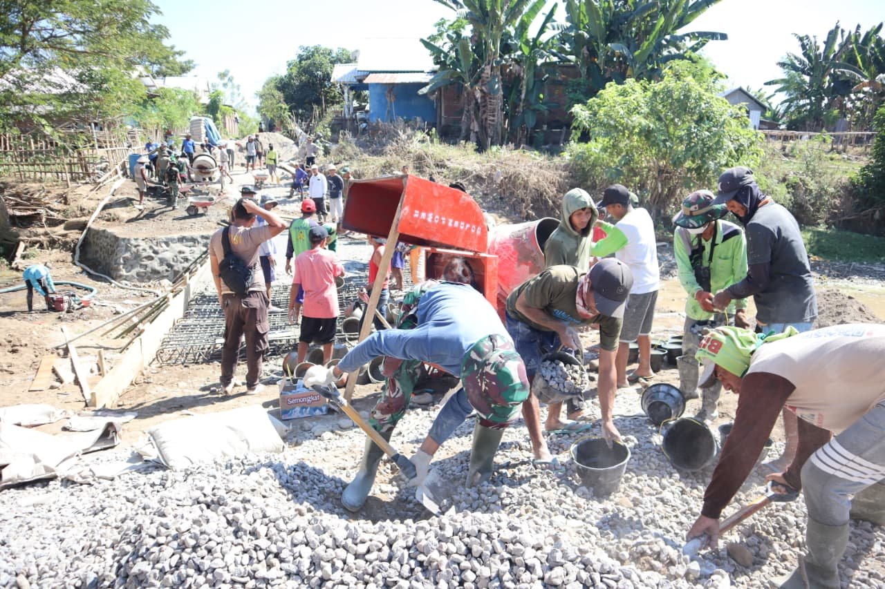 Jembatan yang dibangun ini memegang peran vital sebagai penghubung akses transportasi warga, baik untuk kepentingan ekonomi, pendidikan, maupun pelayanan sosial. Sejak pagi, suasana di lokasi tampak penuh kekompakan. Warga bersama anggota TNI mengangkut material, mengaduk semen, hingga menuangkan cor beton ke rangka jembatan.