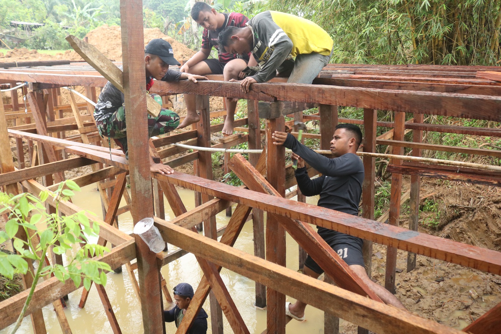 Pengerjaan yang dilakukan secara gotong royong ini tak hanya membangun fisik jembatan, tetapi juga menguatkan ikatan sosial antarwarga dan TNI. Setiap tetes keringat yang jatuh di lokasi proyek menjadi bagian dari cerita perjuangan menuju kehidupan yang lebih mudah dan sejahtera bagi Desa Suka Rahmat.(0909).