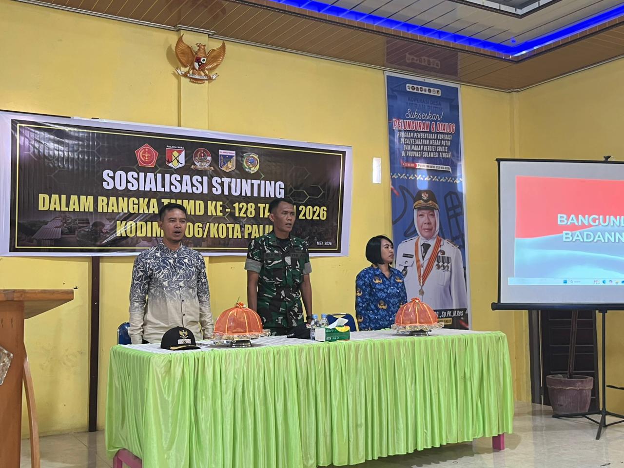 Palu – Parigi Moutong – Melalui program TNI Manunggal Membangun Desa (TMMD) ke-128, Kodim 1306/Kota Palu mengadakan sosialisasi tentang pencegahan stunting di kalangan masyarakat Kecamatan Sausu, yang diadakan di Kantor Desa Sausu Trans, pada Kamis, 30 April 2026.