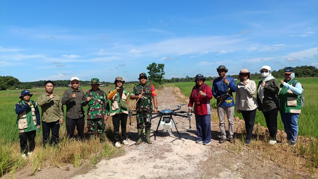 Kotawaringin Barat – Program TNI Manunggal Membangun Desa (TMMD) Reguler Ke-128 yang dilakukan oleh Kodim 1014/Pangkalanbun memberikan inovasi baru dalam sektor pertanian untuk mendukung ketahanan pangan melalui penggunaan drone sprayer. Pengenalan teknologi ini diadakan di Desa Berambai Makmur, Kecamatan Pangkalan Banteng, pada Kamis (23/4/2026).