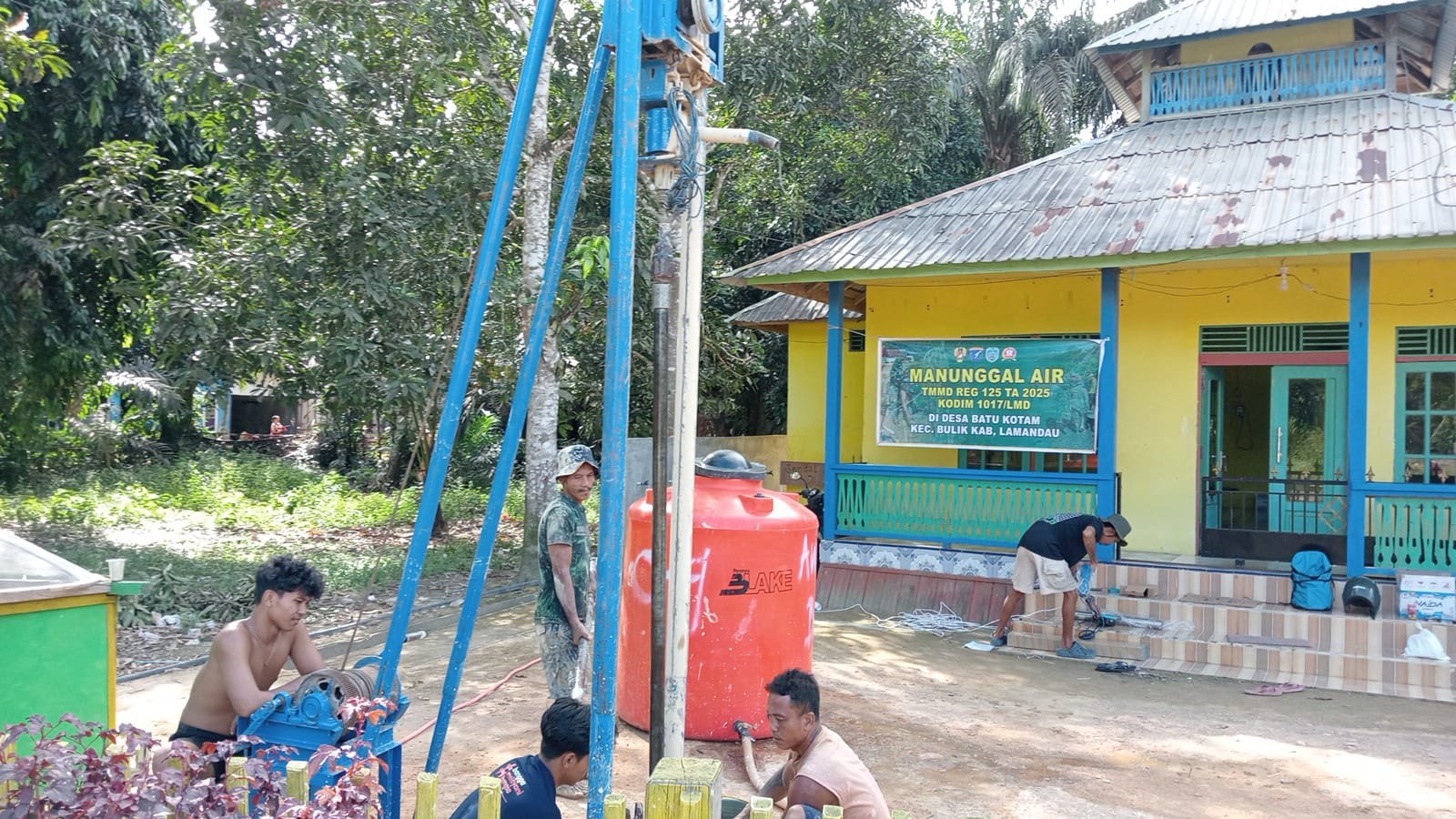 Lamandau, -Program TMMD Reguler ke-125 Kodim 1017/Lamandau terus menyentuh kebutuhan mendasar masyarakat. Kali ini, Satgas TMMD mulai mengerjakan sasaran sumur bor kedua yang berlokasi di Mushola Sarifudin Nur, Desa Batu Kotam, Kecamatan Bulik, Kab. Lamandau, Selasa(29/07/25).