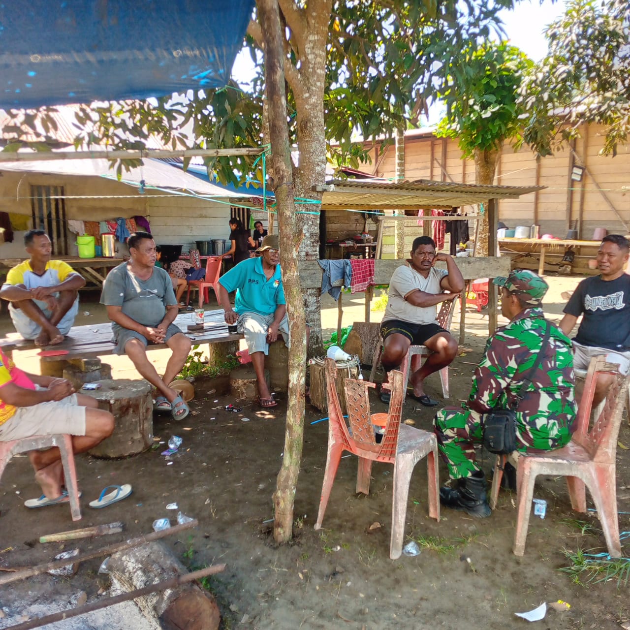Di tengah kesibukan pengerjaan Drainase dan pembangunan sarana air bersih, Satgas TMMD tetap meluangkan waktu untuk berinteraksi dengan masyarakat. Salah satu momen berharga terjadi saat para prajurit menyambangi rumah Bapak Yongki Desa Makateken, dalam sesi Komsos yang berlangsung santai dan penuh keakraban, Minggu (27/07/2025).