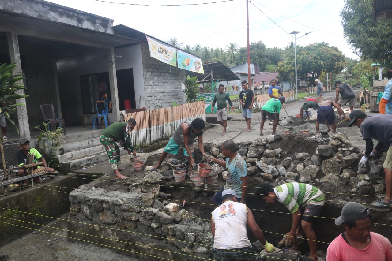 HALMAHERA SELATAN – Memasuki hari ke16 di lokasi sasaran kegiatan fisik TNI Manunggal Membangun Desa (TMMD) Ke-125 Kodim 1509/Labuha, Dalam hal ini Personel Satgas bersama warga terlihat tetap bersemangat dalam mengerjakan pembuatan saluran air (drainase), di kawasan Desa Ombawa, yang membelah jalan Tengah Desa Ombawa, Kamis (07/08/2025).