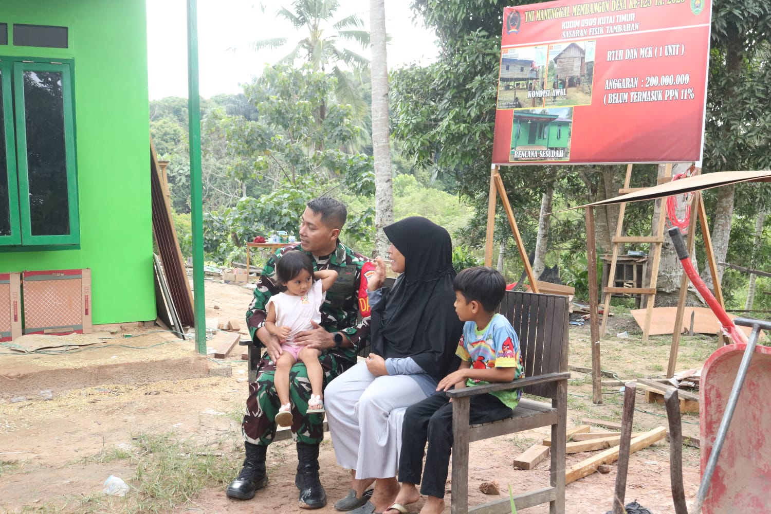 KUTAI TIMUR – Wajah sumringah terpancar dari Rahman, warga Desa Suka Rahmat, Kecamatan Teluk Pandan, ketika melihat rumahnya yang selama ini tak layak huni kini berubah menjadi bangunan yang lebih kokoh. Program TNI Manunggal Membangun Desa (TMMD) Ke-125 Kodim 0909/Kutai Timur telah menghadirkan kebahagiaan besar bagi keluarganya.