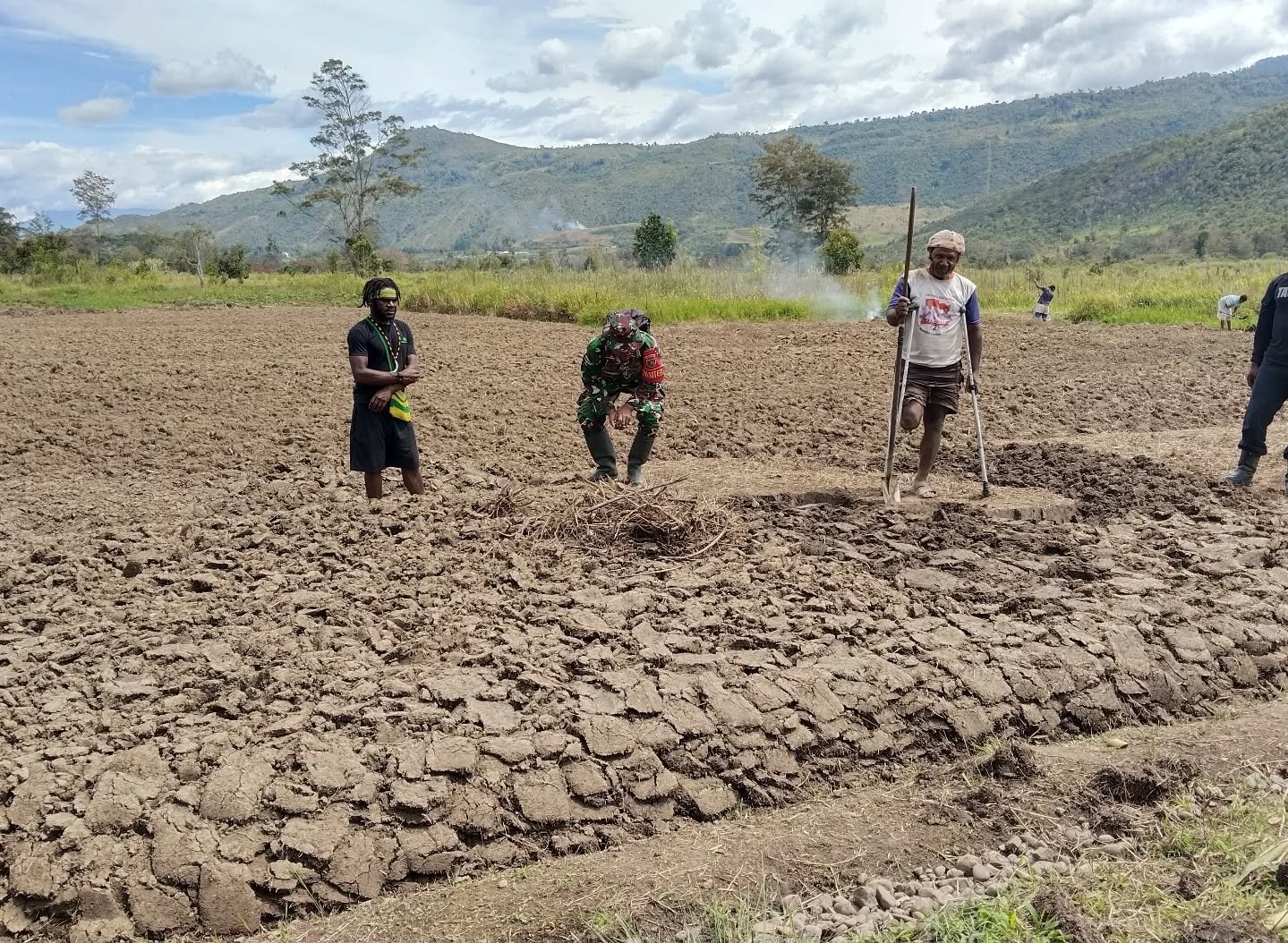 “Melalui program ketahanan pangan ini, kami ingin membantu masyarakat agar lebih mandiri dalam memenuhi kebutuhan pangan sehari-hari. Selain itu, kami berharap program ini bisa menjadi contoh dan terus berlanjut setelah TMMD selesai. Proses kali ini kami awali dengan penyiapan lahan yang akan ditanami tanaman hortikultura,” ujar Dandim.
