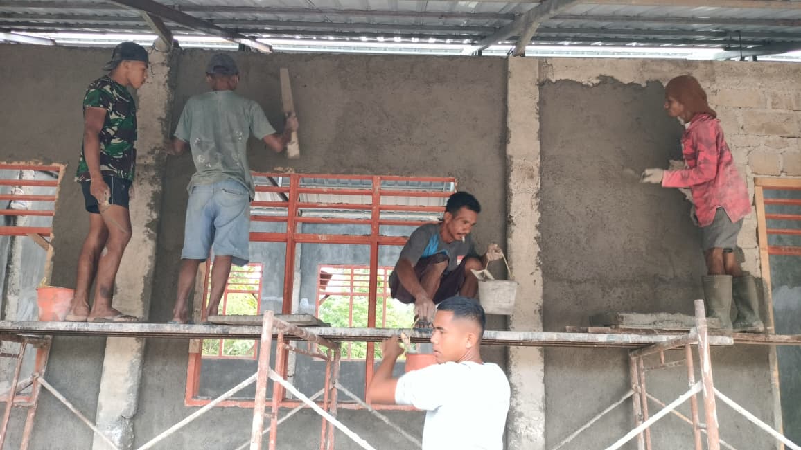 NTT – Kefamenanu – Program TNI Manunggal Membangun Desa (TMMD) Ke-127 yang dilaksanakan oleh Kodim 1618/TTU menunjukkan kemajuan yang signifikan dalam pembangunan 4 Ruang Kelas Baru (RKB). Pada Jumat, 27 Februari 2026, anggota Satgas bersama masyarakat setempat berkolaborasi dalam proses pengerjaan plester pada tembok luar bangunan, yang menjadi langkah penting dalam memperkuat struktur gedung.