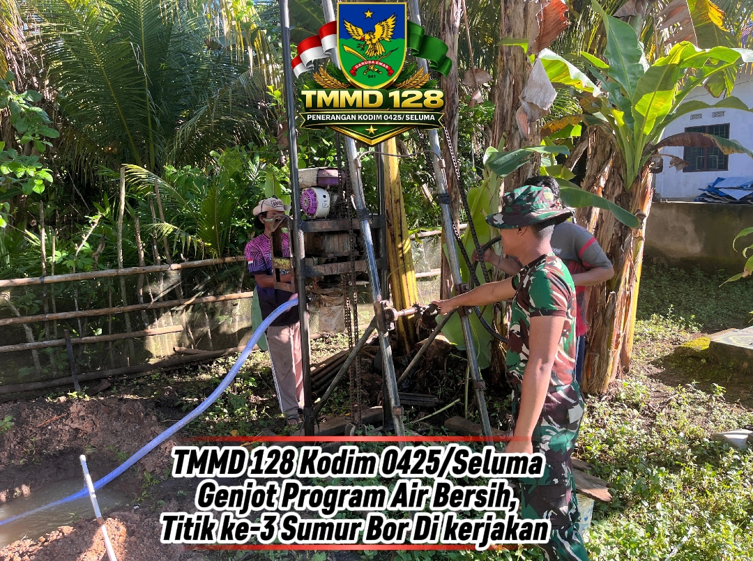 Seluma – Kegiatan TNI Manunggal Membangun Desa (TMMD) ke-128 yang dilaksanakan oleh Kodim 0425/Seluma terus menunjukkan hasil yang positif. Saat ini, upaya penyediaan air bersih yang merupakan salah satu sasaran utama, telah memasuki tahapan pengerjaan sumur bor ketiga yang berlokasi di Desa Lubuk Lagan, Kecamatan Talo Kecil, Kabupaten Seluma, pada Minggu (26/04/2026).