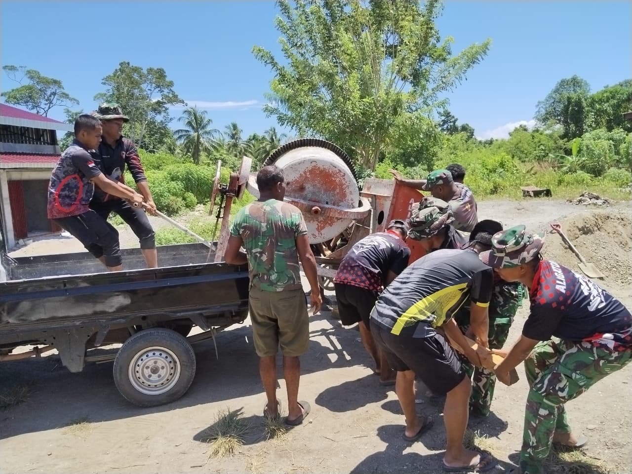 Saat di Kampung Tanah Rubuh, terlihat adanya kemitraan nyata antara anggota Satgas dan masyarakat dalam mengangkut peralatan menuju lokasi tugas. Ini menekankan pentingnya kolaborasi dalam setiap proses pembangunan.