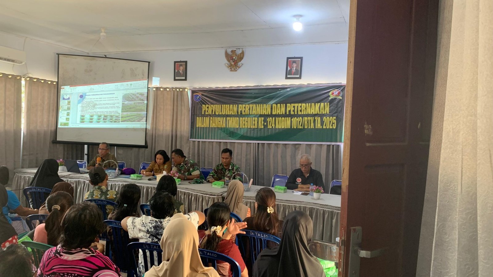 Sebagai bagian dari rangkaian kegiatan non fisik dalam program TNI Manunggal Membangun Desa (TMMD) Ke-124, Kodim 1012/Buntok turut menghadirkan penyuluhan pertanian dan peternakan yang dilaksanakan di Balai Desa Talio, Kecamatan Karau Kuala, Kabupaten Barito Selatan. Kegiatan ini menggandeng Dinas Ketahanan Pangan dan Pertanian Kabupaten Barito Selatan sebagai narasumber utama.