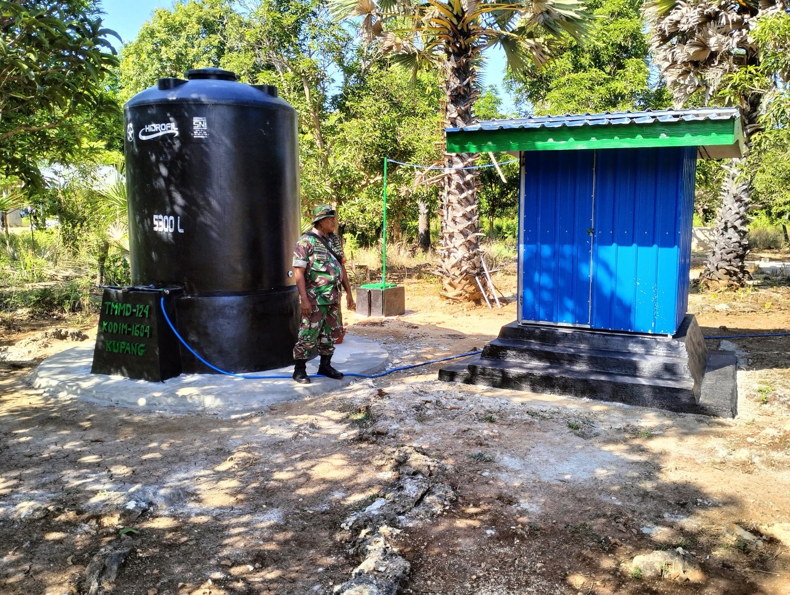 NTT-KUPANG, Program TNI Manunggal Membangun Desa (TMMD) ke-124 Kodim 1604/Kupang Tahun Anggaran 2025 kembali menunjukkan hasil nyata melalui sasaran fisik pembuatan sumur bor di Desa Huilelot, Kecamatan Semau, Kabupaten Kupang. Pekerjaan ini berhasil diselesaikan 100% sebelum genap 30 hari dari waktu yang ditargetkan, menandai efektivitas dan semangat gotong royong dalam pelaksanaannya. Rabu (28/05/2025).