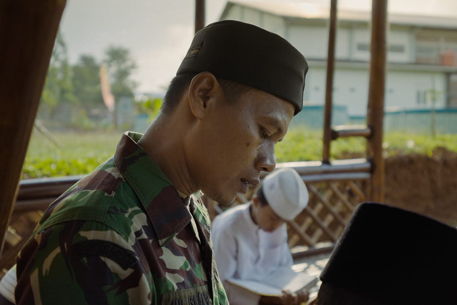 Seperti yang dilakukan salah satu anggota Satgas TMMD di Desa Kandangmas, Kecamatan Dawe. Di sela kesibukan membangun jalan dan sarana umum, ia meluangkan waktu untuk mengajar anak-anak desa mengaji Al-Qur’an. Suasana penuh keakraban terlihat saat prajurit TNI dengan sabar membimbing anak-anak membaca huruf demi huruf, seakan menjadi penguat ikatan antara TNI dengan masyarakat, Sabtu (16/08).