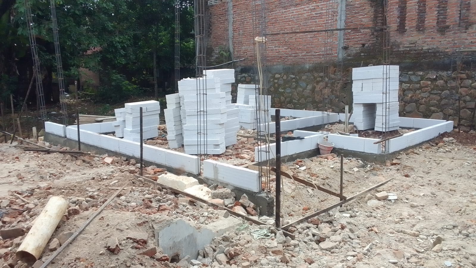 Pantauan di lapangan menunjukkan bahwa batu herbel telah tersedia dan tersusun rapi di sekitar lokasi pekerjaan. Ini menandakan proses pembangunan terus berlanjut sesuai perencanaan, dan kini telah mencapai progres 12 persen.
