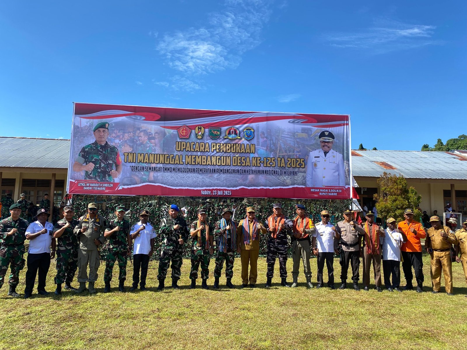 Kampung Manunggal Jaya, 23 Juli 2025 — Ketika berbagai lapisan masyarakat menyatu dalam barisan upacara TMMD ke-125, ada semangat kolaborasi yang begitu terasa. Di tengah langit cerah Papua Tengah, 350 orang dari unsur militer, sipil, hingga pelajar dan ormas berdiri bersama, menandai sinergi yang utuh antara rakyat dan negara.