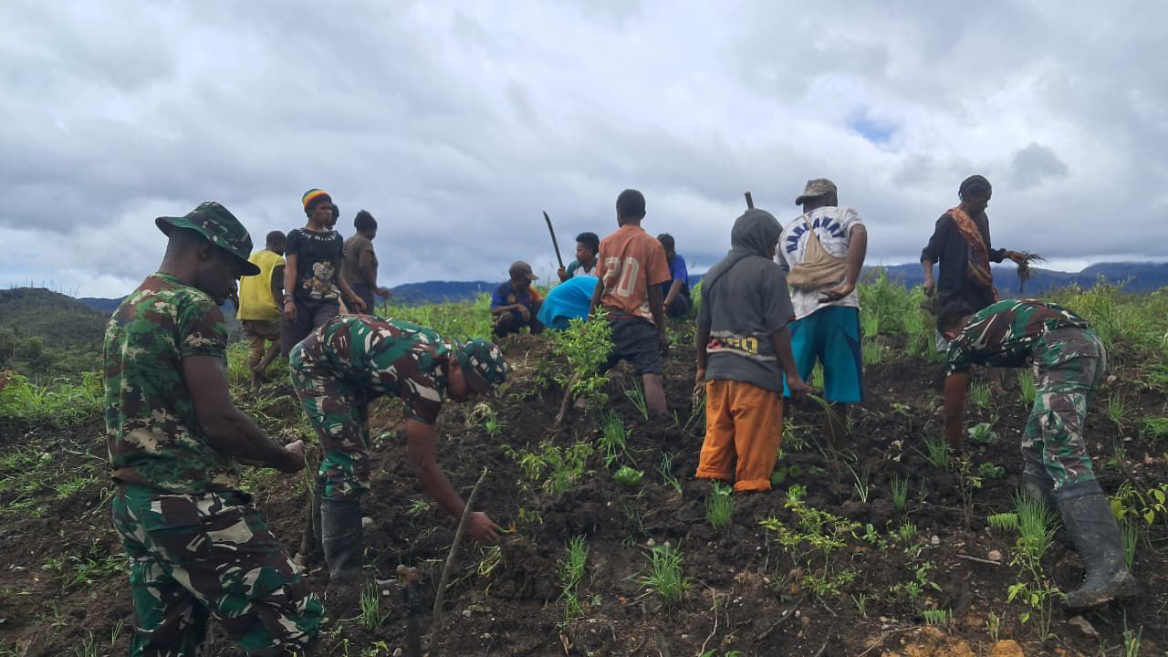 TNI dan Masyarakat Bersinergi dalam Membangun Ketahanan Pangan di Pegunungan Bintang