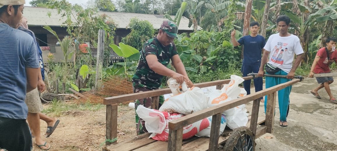 Proses pengangkutan dilakukan dengan peralatan sederhana dan tenaga manual. Di tengah keterbatasan alat dan cuaca panas, kebersamaan antara TNI dan masyarakat menjadi pendorong utama kelancaran pekerjaan.