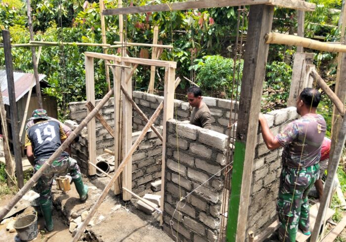 Meskipun medan yang dilalui cukup sulit, tidak mengurangi semangat warga dan personel TNI dalam menuntaskan pekerjaan. Mereka bersama-sama mengangkat material dan menyusun kerangka jembatan secara bertahap.