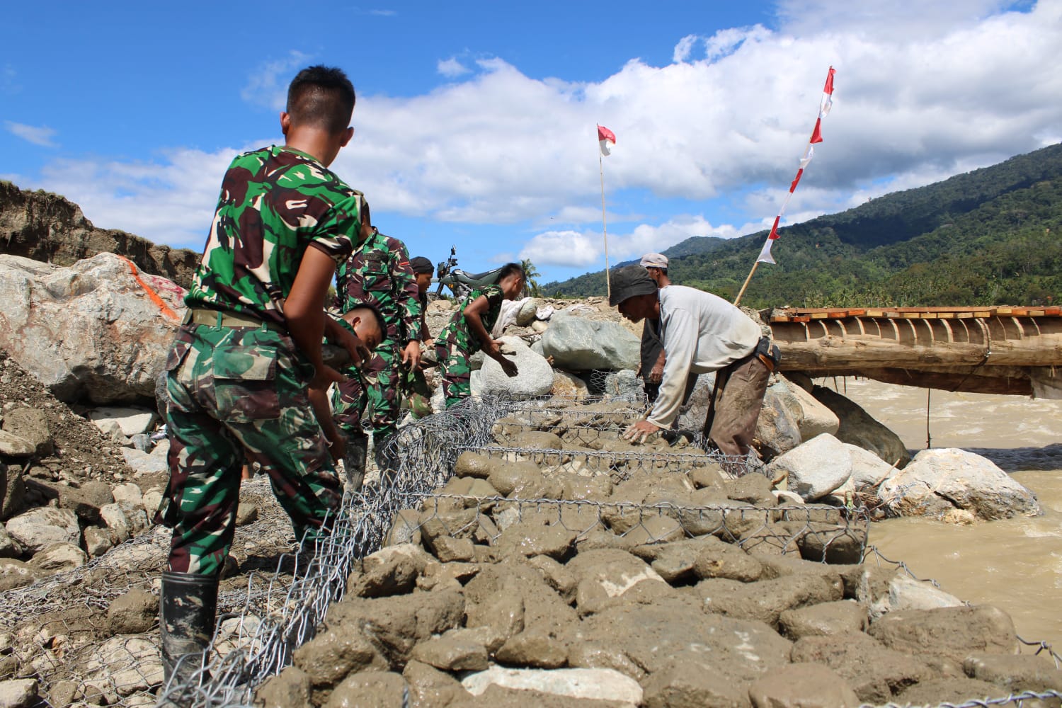 Selain pembangunan Jembatan Bailey, TNI dan dinas terkait juga menyiapkan berbagai percepatan pembangunan, di antaranya pembangunan pondasi dasar bronjong abutmen yang telah mencapai 60 persen, serta perbaikan aliran sungai lama yang telah mencapai 90 persen.
