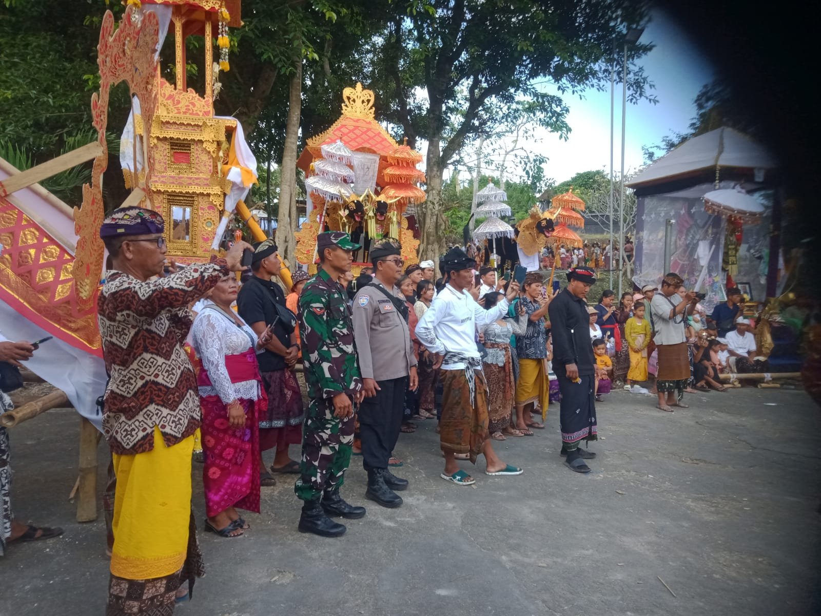Hari ini untuk menjaga dan memastikan rangkaian tradisi mepeed berjalan dengan aman, tertib dan lancar, dirinya bersama Bhabinkamtibmas dan pecalang melaksanakan pengamanan dan pengawalan,”jelasnya.
