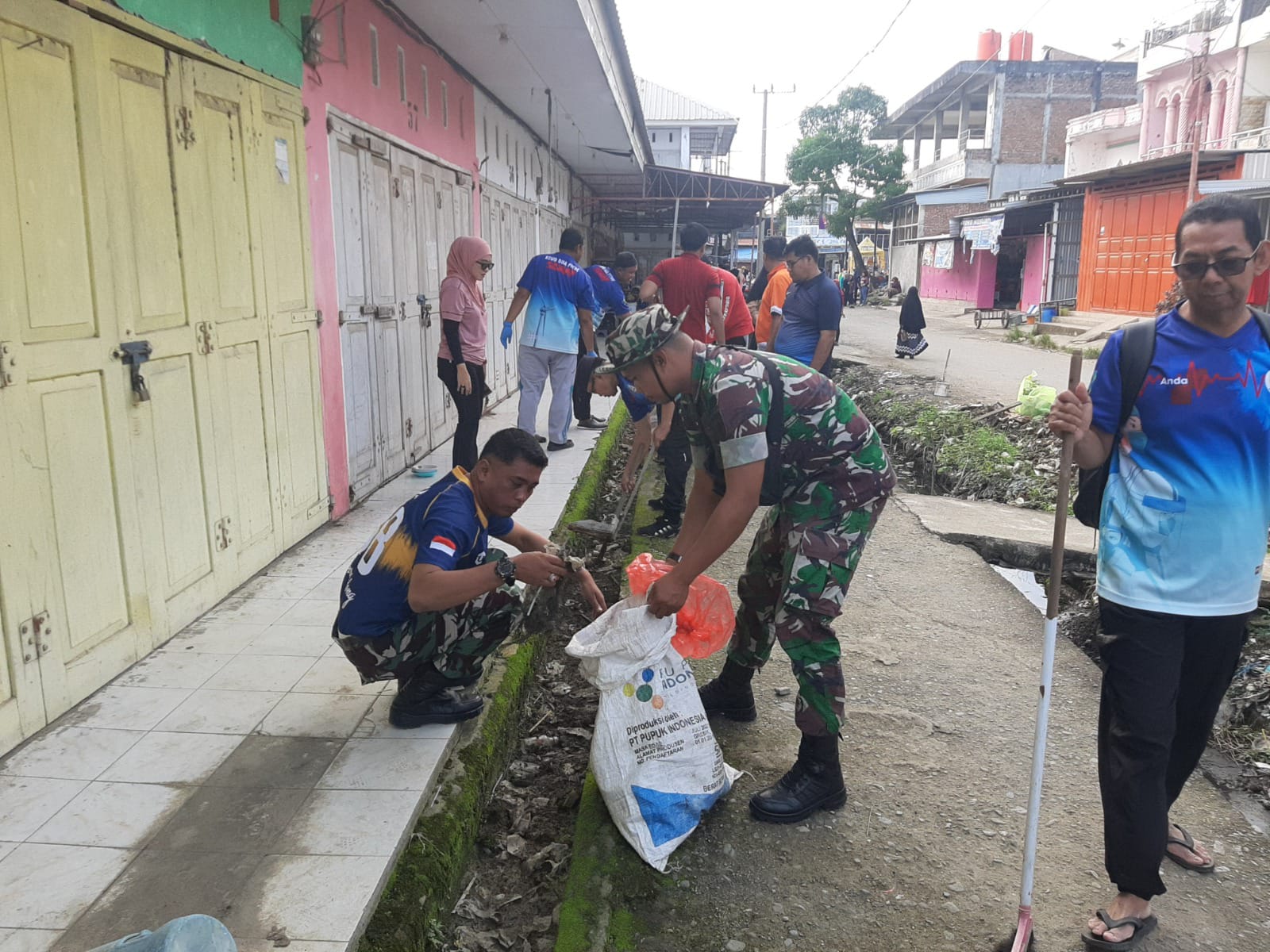 Kegiatan ini melibatkan seluruh personel Koramil yang datang dengan membawa alat pembersih seperti sapu, penyedot sampah, dan ember. Mereka bekerja sama membersihkan berbagai area pasar, termasuk lorong-lorong, area parkir, dan saluran drainase. Selain anggota TNI, para pedagang dan warga sekitar juga terlibat dalam aksi gotong royong tersebut, menunjukkan sinergi antara aparat dan masyarakat setempat.