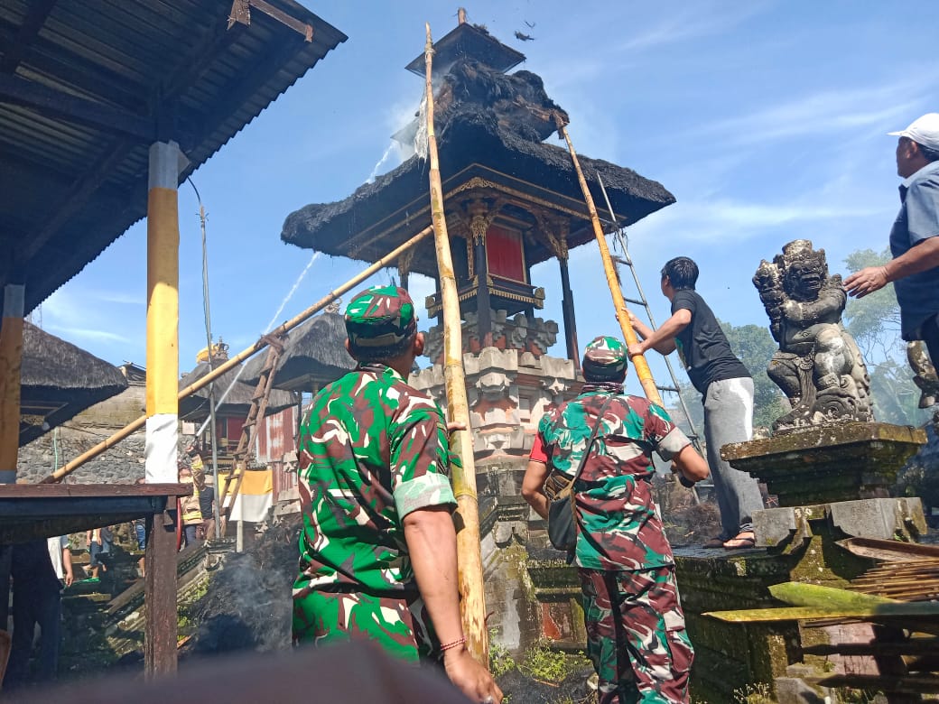 Menanggapi laporan yang diterima, Tim Koramil 1626-04/Kintamani bersama dengan Polsek Kintamani segera bergegas menuju lokasi. Dengan sigap, mereka membantu proses pemadaman dan berusaha mencegah api agar tidak menjalar ke bangunan pura lainnya. Sekitar pukul 08.30 WITA, satu unit mobil pemadam kebakaran dari BPBD Kabupaten Bangli tiba di lokasi untuk melakukan pemadaman secara intensif.