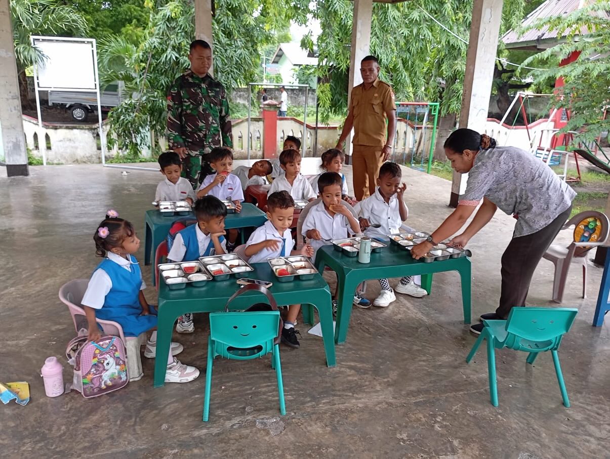 Pada hari Selasa, 27 Januari 2026, Praka Aris Wijayanta, anggota Babinsa Koramil 1603-01/Alok dari Kodim 1603/Sikka, melaksanakan kegiatan penting dalam mendampingi pembagian Makanan Bergizi Gratis (MBG) di PAUD Sayang Anak yang berlokasi di Kelurahan Madawat, Kecamatan Alok, Kabupaten Sikka. Kegiatan ini merupakan bagian dari upaya TNI Angkatan Darat untuk berkontribusi dalam program peningkatan gizi anak-anak usia dini.
