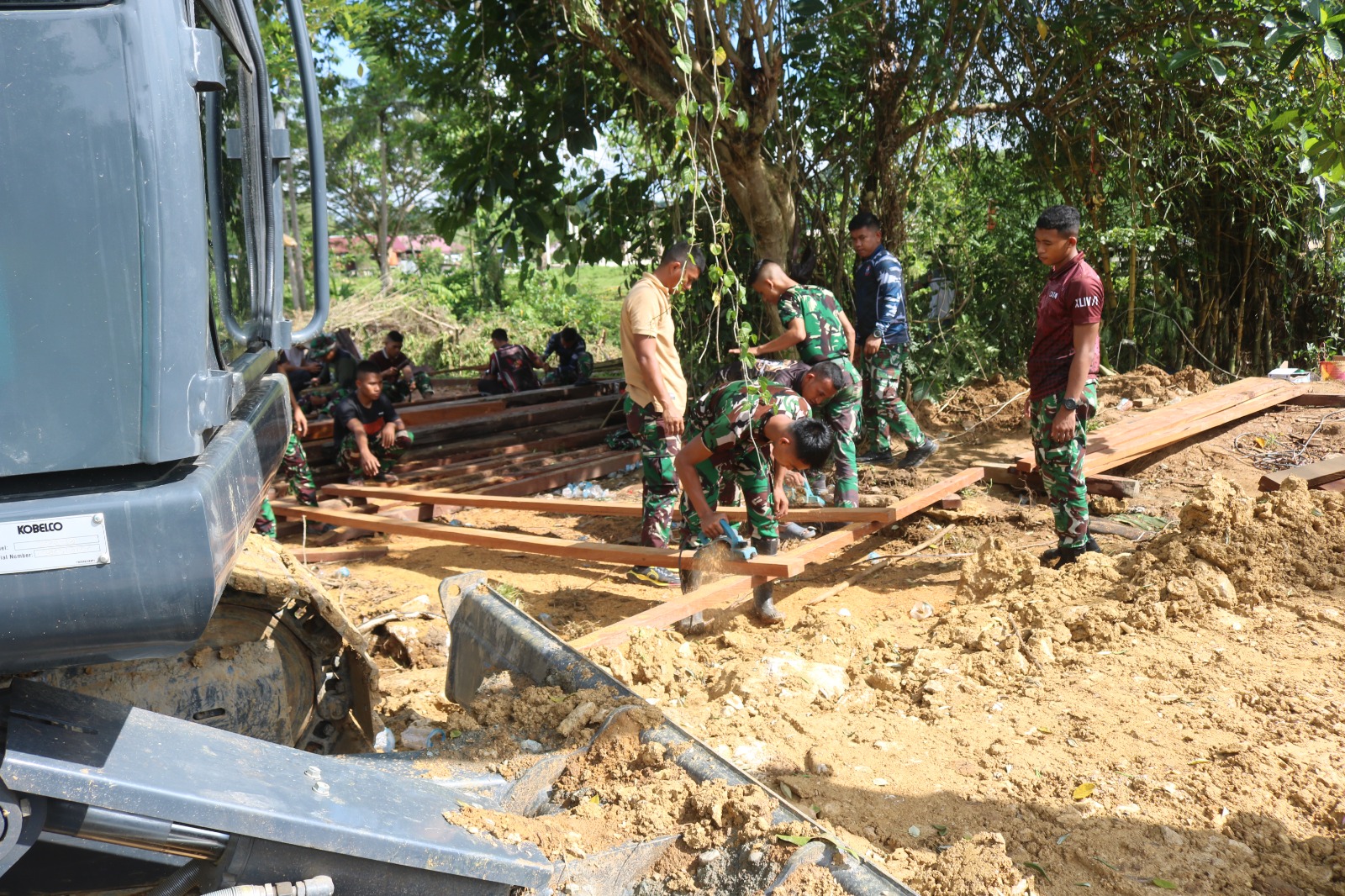 Suasana gotong royong tampak setiap hari di lokasi proyek. TNI dan warga bahu-membahu mengangkat material, merakit besi, dan mengatur posisi gelagar dengan penuh semangat. Masing-masing memainkan peran, menandakan bahwa jembatan ini bukan hanya milik desa, melainkan milik bersama yang dibangun dengan kekuatan kolektif.