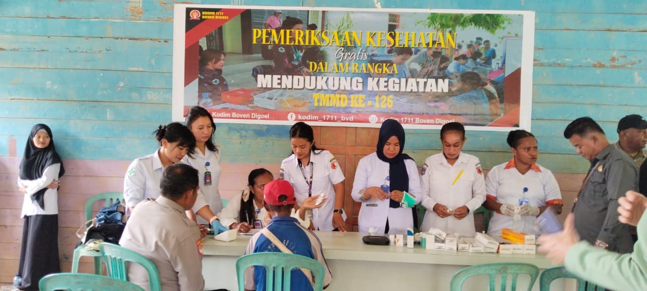 Boven Digoel – Pemeriksaan Kesehatan, Pengobatan Massal oleh Satgas TMMD ke 126 Kodim 1711/BVD, dalam rangka mendukung kegiatan TMMD ke 126 yang dilaksanakan di Kampung Waropko  Distrik Waropko, telah mendapat apresiasi dari masyarakat setempat. Kegiatan yang meliputi cegah stunting, pemberian paket bantuan nutrisi tambahan, dan pemeriksaan serta pengobatan gratis untuk lansia, telah memberikan manfaat besar bagi masyarakat.
