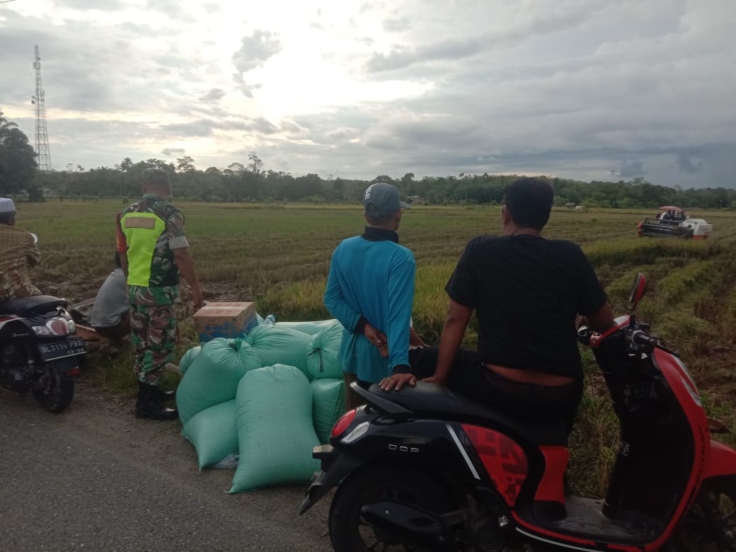 ACEH BARAT – Bintara pembinaan desa (BABINSA) Posramil 06/Bubon, Kodim 0105/Aceh Barat, Serda Hendri mendampingi petani dalam masa panen di desa Layung Kecamatan Bubon Kabupaten Aceh Barat.Kamis ( 18/09/2025).