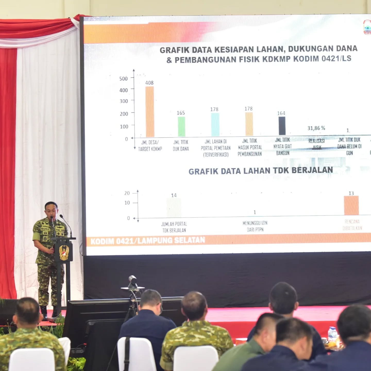 Lampung Selatan — Rabu (04/02/2026), Wakil Panglima TNI melakukan penerimaan paparan dari Komandan Kodim 0421/Lampung Selatan terkait kemajuan pembangunan dan strategi percepatan Koperasi Desa/Kelurahan Merah Putih (KDKMP). Dalam kesempatan tersebut, Dandim 0421/Lampung Selatan menjelaskan tentang capaian program KDKMP di wilayah yang menjadi tanggung jawabnya.