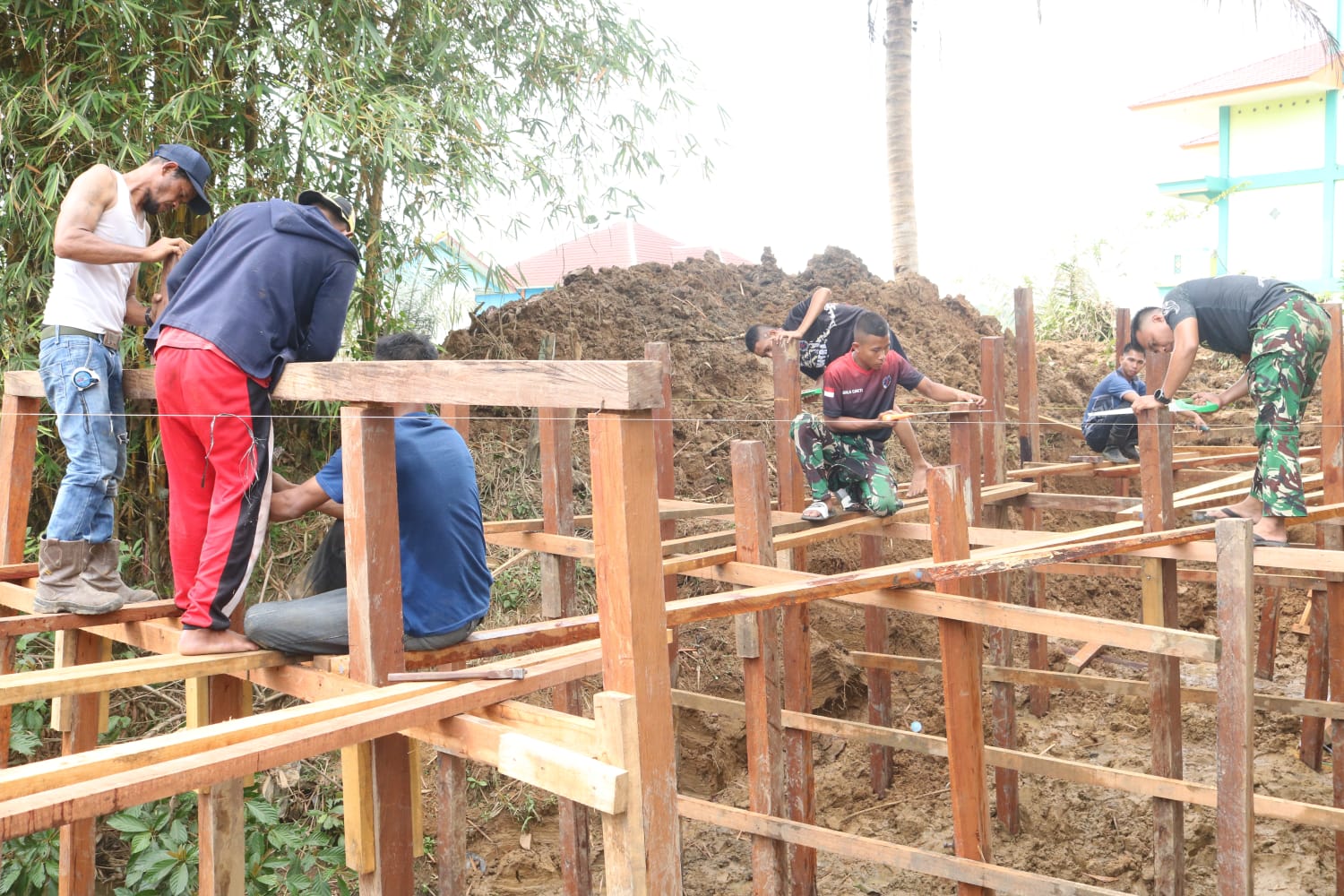 Pengerjaan proyek saat ini memasuki tahap pemancangan tiang, di mana Satgas TMMD bekerja ekstra untuk memastikan struktur pondasi kuat dan tahan lama. Kegiatan tersebut turut melibatkan partisipasi warga setempat, menciptakan semangat gotong royong dan mempererat kemanunggalan TNI dengan rakyat.