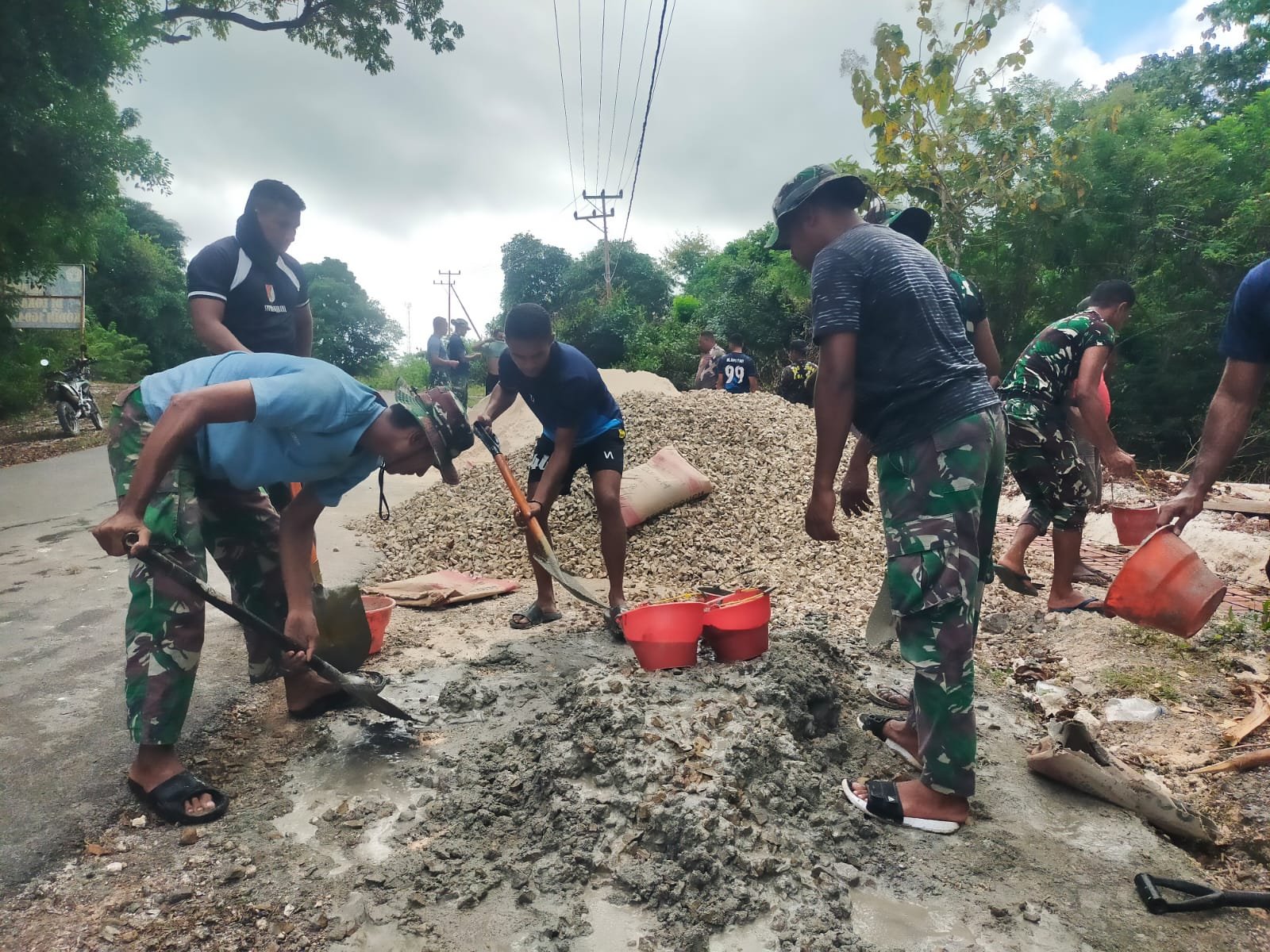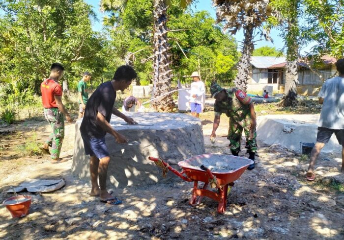 NTT-SEMAU – Warga Desa Huilelot, Kecamatan Semau, Kabupaten Kupang, bersama personel Satgas TNI Manunggal Membangun Desa (TMMD) ke-124 Kodim 1604/Kupang kembali menunjukkan semangat gotong royong dalam kegiatan pengecoran deker di titik 0 kilometer. Titik ini merupakan bagian awal dari sasaran fisik I, yakni pembukaan dan pengerasan jalan sepanjang 1,4 kilometer yang menjadi program prioritas di desa tersebut. Kamis (29/05/2025).