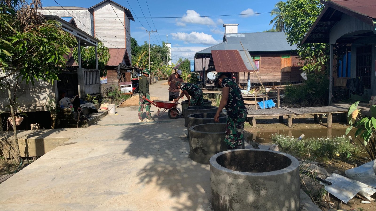Barito Selatan – Satgas TMMD Reguler ke-124 Kodim 1012/Buntok bersama masyarakat Desa Talio, Kecamatan Karau Kuala, Kabupaten Barito Selatan, bergotong royong membuat cincin sumur gali pada Minggu (25/05/2025).