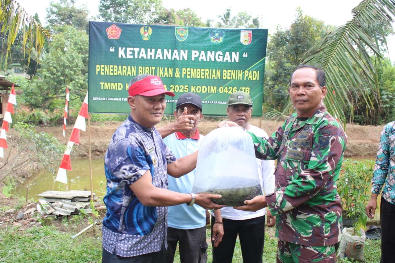 Tulang Bawang, 14 Agustus 2025 – Suasana penuh semangat terlihat di Kampung Moris Jaya, Kecamatan Banjar Agung, saat Satgas TMMD ke-125 Kodim 0426/Tulang Bawang bersama warga menebar 3.000 bibit ikan lele, Kamis (14/8/2025).
