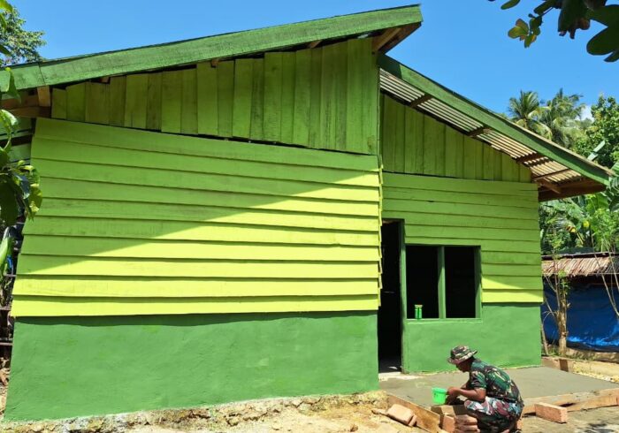 “Kami senang bisa membantu bapak-bapak TNI. Ini pembangunan untuk kampung kami sendiri, jadi kami ikut turun tangan,” ujarnya sambil tersenyum.