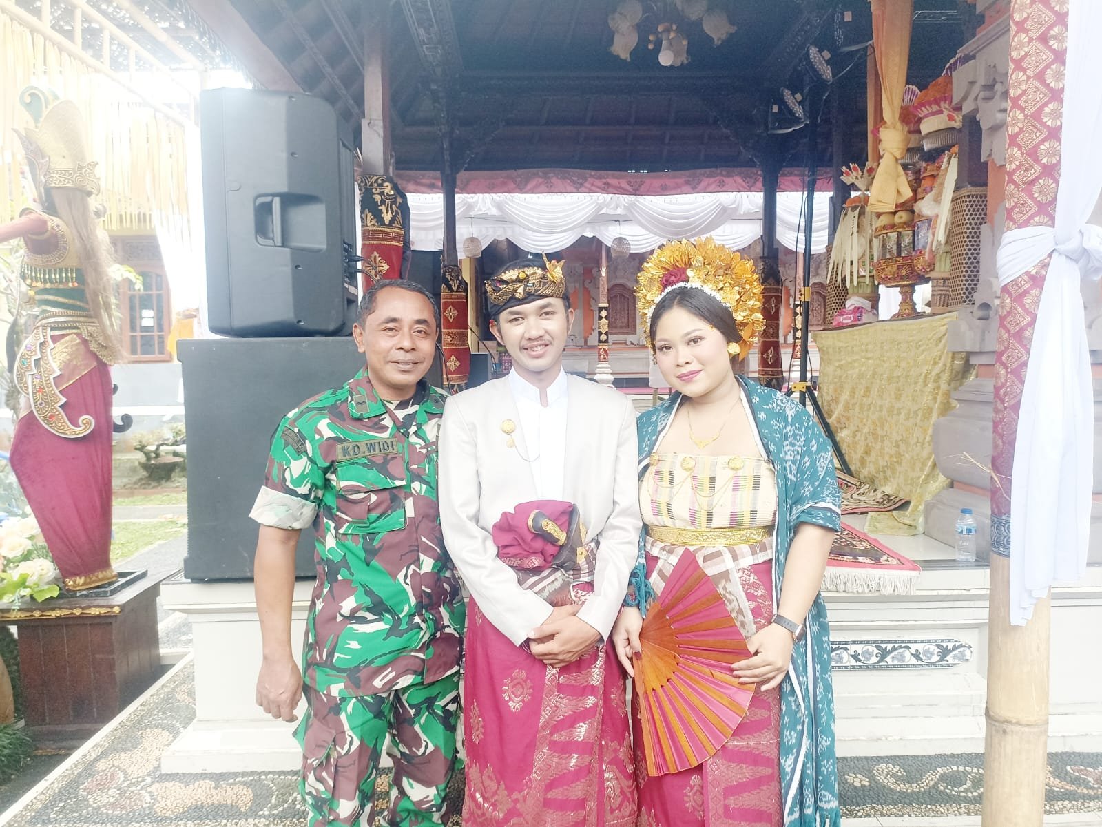 Bangli – Babinsa Desa Bangbang Koramil 1626-03/Tembuku, Pelda Kadek Widiarta, menghadiri undangan resepsi pernikahan putra dari Bapak I Nyoman Darwita, atas nama I Putu Wiguna dengan Ni Komang Siska, yang dilaksanakan di rumah mempelai pria di Banjar Bangkiangsidem, Desa Bangbang, Kecamatan Tembuku, Kabupaten Bangli.pada sabtu sore (30/08/2025)