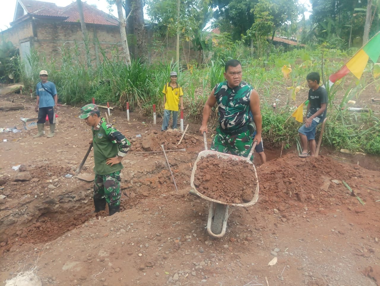 Way Kanan, 14 Oktober 2025 — Semangat kebersamaan antara TNI dan masyarakat kembali terlihat dalam kegiatan pembangunan gorong-gorong pada program TMMD ke-126 Kodim 0427/Way Kanan di Dusun 2 RT 6. Pekerjaan fisik yang kini memasuki tahap pembuatan pondasi ini dilaksanakan secara gotong royong antara Satgas TMMD dan warga setempat.