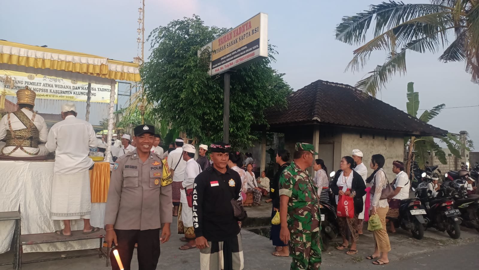 Klungkung,- Konsistensi terus diberikan aparat keamanan di Desa Takmung dalam rangka memastikan rangkaian upacara atma wedana dan manusa yadnya kinebulan Maha Gotra Pasek Sanak Sapta Rsi ( MGPSSR ) Kabupaten Klungkung berjalan aman dan lancar.