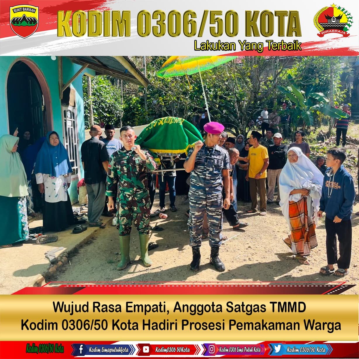 Kehadiran Satgas TMMD Kodim 0306/50 Kota dalam mempersiapkan prosesi pemakaman tersebut tentunya sangat membantu pihak keluarga dan warga sekitar.