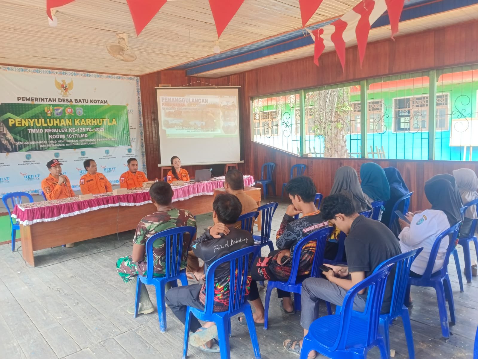 Lamandau – Dalam upaya meningkatkan kesadaran dan kesiapsiagaan masyarakat terhadap ancaman kebakaran hutan dan lahan (Karhutla), Satgas TMMD Reguler ke-125 Kodim 1017/Lamandau menggelar kegiatan penyuluhan Karhutla di Desa Batu Kotam, Kec. Bulik Kab. Lamandau Selasa (5/8/2025).