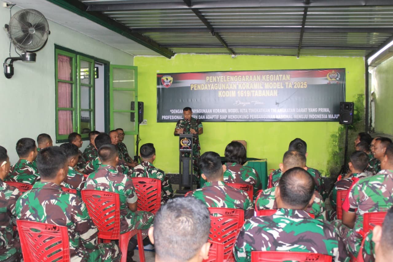 Dalam sambutannya, Dandim 1619/Tabanan menyampaikan bahwa kegiatan pendayagunaan Koramil Model merupakan bagian dari upaya TNI AD untuk meningkatkan kualitas dan kemampuan satuan di tingkat Koramil dalam melaksanakan tugas pembinaan teritorial (Binter) di wilayahnya masing-masing.